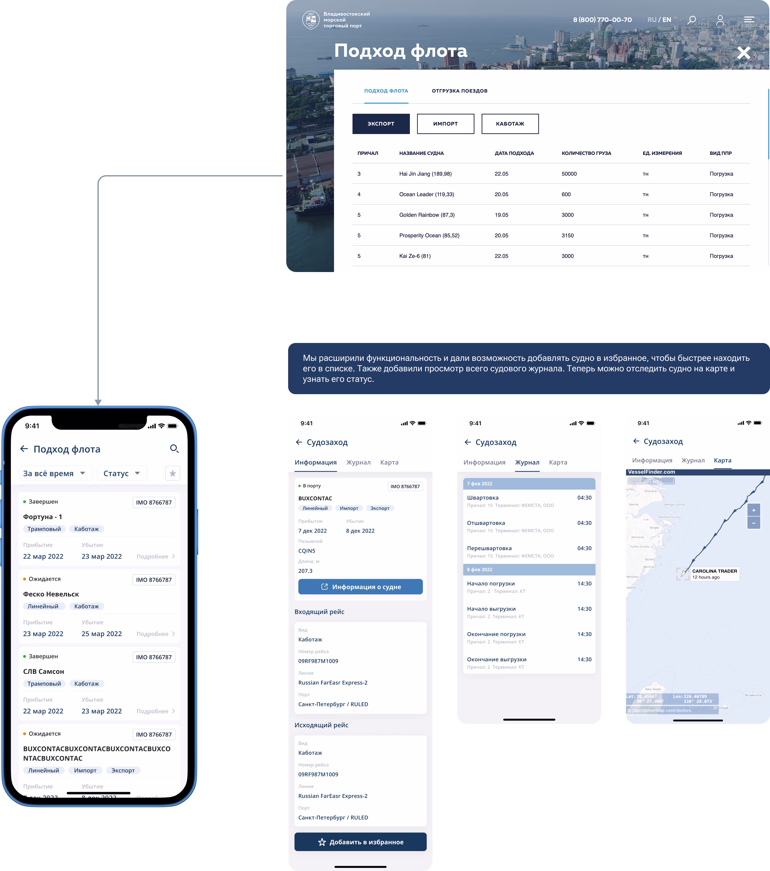 Раньше клиенты пользовались сайтом, чтобы посмотреть расписание движений на экспорт, импорт и каботаж, и у них не было возможности посмотреть больше информации о судне.