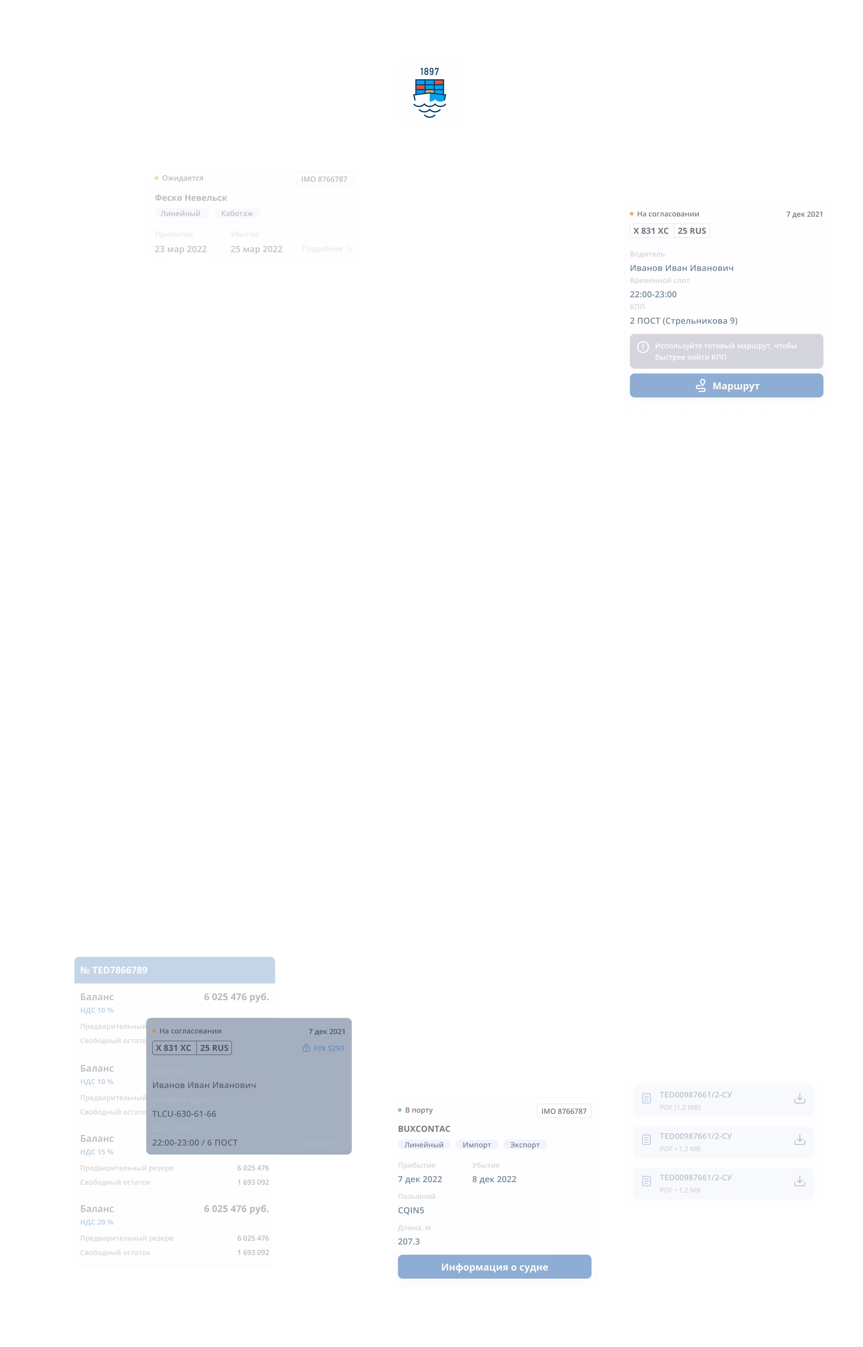 Чтобы попасть на территорию порта, нужно оформить пропуск. Он может быть пешеходным, когда необходимо забрать или подписать документы, и автомобильным, когда нужно забрать груз. Благодаря этому сервису клиенты легко создают заявки и отслеживают их статусы.