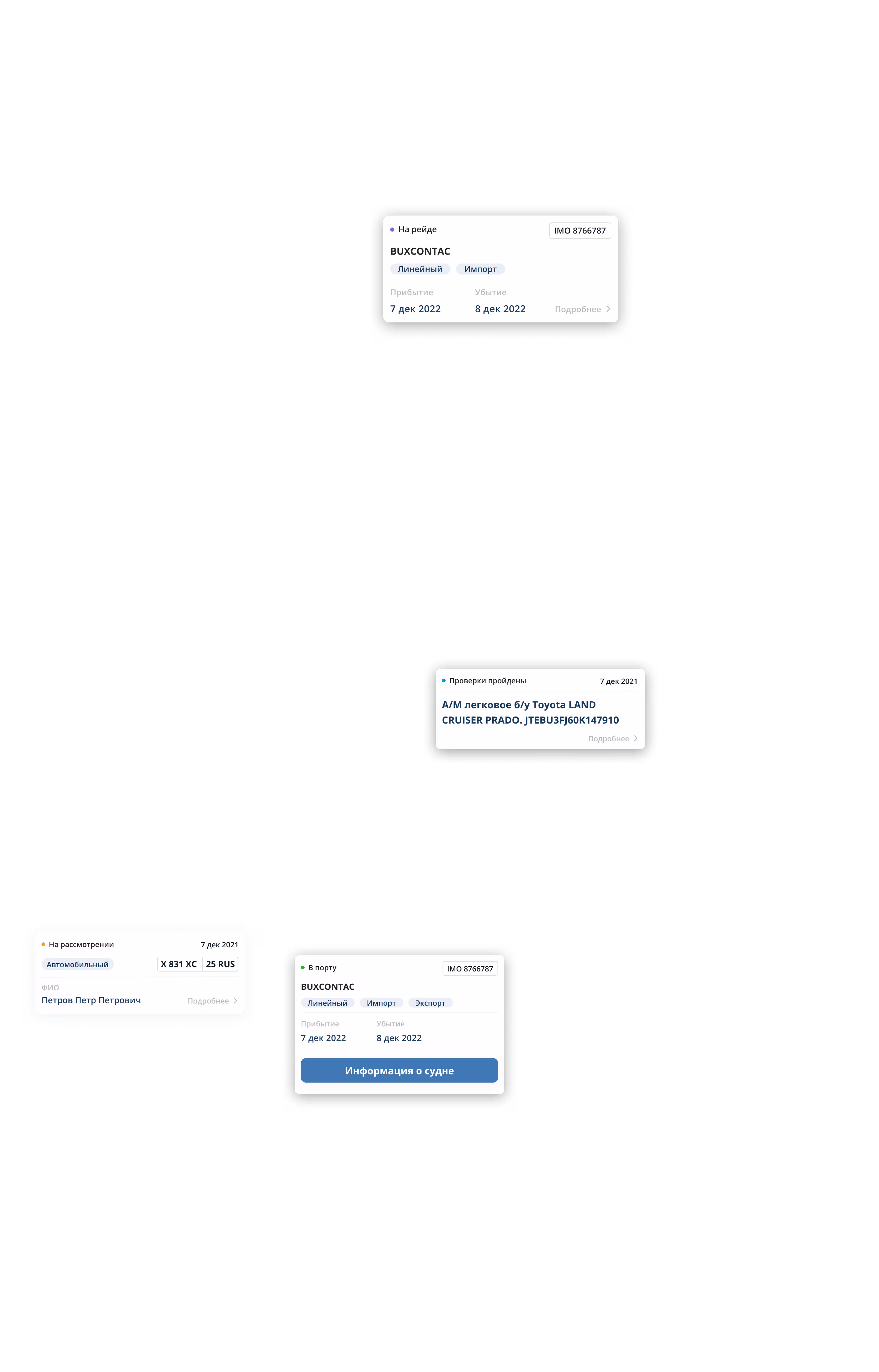Чтобы забрать груз из порта, необходимо оформить заявку на закрытие склада. Одна из главных задач этого сервиса— показать статус грузов, чтобы при возникновении сложностей клиент мог сразу урегулировать их.